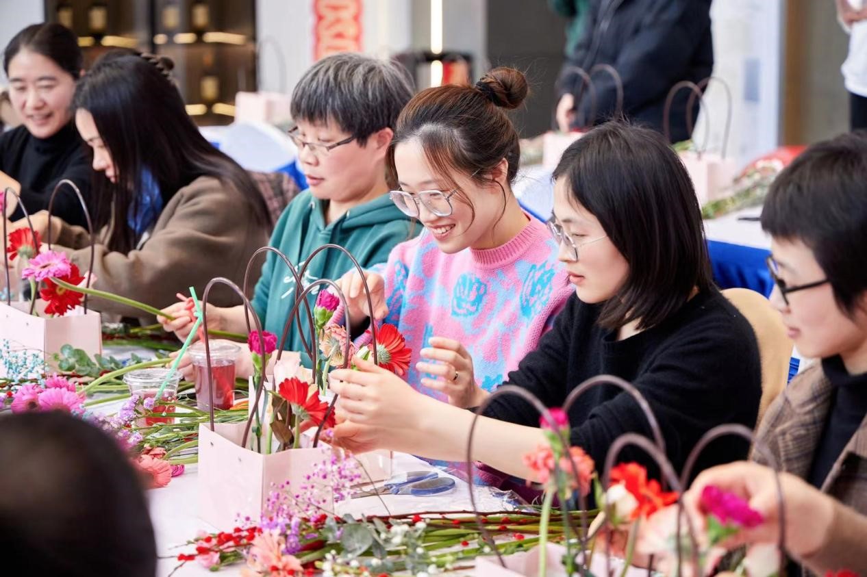 此次活動(dòng)結(jié)合盛和公司房地產(chǎn)行業(yè)特點(diǎn),將活動(dòng)與樓盤(pán)推廣相結(jié)合。地點(diǎn)設(shè)在盛和公司與融創(chuàng)公司合作的平潮“潮啟未來(lái)”項(xiàng)目。活動(dòng)邀請(qǐng)了花藝?yán)蠋煟o大家講授選花、裁剪、顏色搭配、造型等方面的插花技巧。一枝枝鮮花鋪在桌面上,大家在花藝師的指導(dǎo)下,進(jìn)行嘗試和實(shí)踐。在一修一剪之間,桌上一盆盆細(xì)致精美、別出心裁的插花作品逐漸誕生。插花結(jié)束后,又舉辦了分享樓盤(pán)推廣點(diǎn)贊活動(dòng),將樓盤(pán)推廣信息在朋友圈內(nèi)進(jìn)行展示,在15分鐘內(nèi)點(diǎn)贊最高6名女職工還可以得到特殊的獎(jiǎng)勵(lì)。大家踴躍參加,發(fā)動(dòng)親朋好友推廣點(diǎn)贊,活動(dòng)現(xiàn)場(chǎng)歡聲笑語(yǔ),你追我趕,進(jìn)行了激烈的PK。